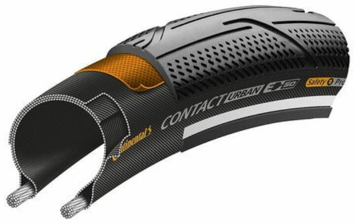 Continental Contact Urban 28-29 x 2,0 (50-622) külső gumi (köpeny) E50, defektvédett (SafetyPro System), reflexcsíkos, 665g SafetyPro System defektvédelemmel A Contact Urban gumit városi felhasználásra fejlesztették, E-bike kompatibilis 50 km/h sebességig. A profil megnöveli az akkumulátor élettartamát. Az új SafetyPro defektvédelem nylon textilből készül, keresztszövésű tex