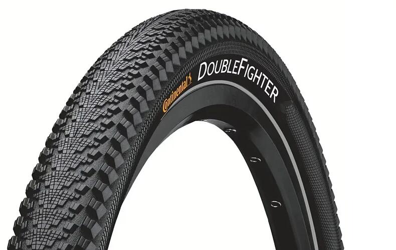 Continental Double Fighter III 26x1,9 (50-559) külső gumi (köpeny), reflexcsíkos, 790g, fekete Aszfaltra, erdei ösvényekre és murvás utakra használható külső gumi. Ha ezt szereled fel a bringádra, egy nagyon gyors túragépet és városi mindenest tudsz kialakítani. Alacsony gördülési ellenállás, mégis jó tapadás jellemzi. Erősített oldalfalakkal a sérülések elleni véde