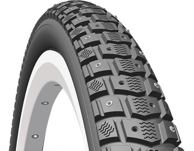 Mitas (Rubena) Froster R07 26x1,75 (47-559) szöges külső gumi (köpeny), 120 szöggel, defektvédett (Stop Thorn Smart), reflexcsíkos 22TPI, 830g Egy sokoldalú téli minta tüskékkel és asszimetrikus, optimálisan kiosztott lamellákkal. A kétsoros kiosztás (120 acél tüske) kényelmes, csendes kerékpározást biztosít alacsony gördülési ellenállás mellett. 2x27 TPI szövetszerkez