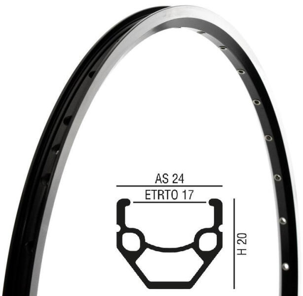 ETRTO: 584-17 mm Magasság: 20 mm Súly: 600 g Lyukszám: 36 szegecselt Szelep kialakítás: FV Szín: fekete