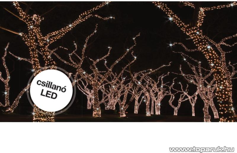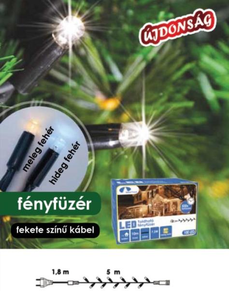JÉGSZIKRÁZÓ Fényfüzér meleg fehér, fekete kábellel, 10 m, 100 égő, kdk211 A különleges jégszikrázó jégcsapfüzér 100 meleg fehér és 20 db villogó hideg fehér LED-ből áll. A kiváló minőségű Kontakt LED fényfüzér kültéri dekorálásra alkalmas, varázslatos fénybe burkolja házad, erkélyed, de akár fára is tekerheted. Ez a fényfüzér akár 100 méter hosszan cs