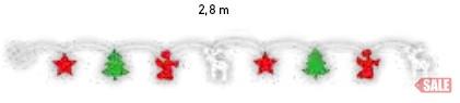 Beltéri fényfüzér meseszép 8 színes figura 48 db LED 2,8 m KDE 101 Ezen a fényfüzéren posztóból készült, aranyos figurák borítják a LED-eket. Kisgyermekes családok nagy kedvence, meleg fehér fénye a szarvas, csillag, angyalka és fenyőfa figurákkal tényleg meseszép dekorációja lehet a gyerekszobáknak, óvodának, játszóháznak, játékboltnak. Átlátszó kábel fogyasz