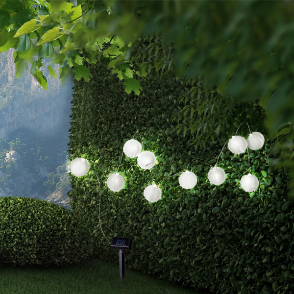 SOLAR füzér 3 méter hosszú 10 db fehér gömbbel, tartalmazza: 10xLED 0,06W 3,2V, . Az ár 1 darab termékre vonatkozik!
