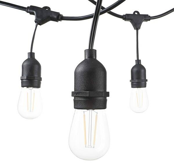 Az Optonica E27-es foglalattal ellátott fényfűzér hossza 14.4 méter, amely 15 db foglalatot tartalmaz. A termék nem tartalmazza a fényforrást! Maximum 40 Wattos izzóval üzemelhető foglalatonként. IP65-ös védelmének köszönhetően kültéren is használható. A fényfűzér színe fekete, amelyt gumiboritás takar. A fényfűzér széles körben alkalmazható a szórakozó helyiség