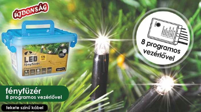A klasszikus, tökéletes karácsonyfa világítás. Egyenes fényfüzér, sötét kábellel, ami jól elrejti a fenyőfán. Könnyen feltekerhető a fára, és a 10 méteres betáp kábele kényelmesen elér a konnektorig. Ezzel a fényfüzérrel nem tévedhetünk. Bármilyen fenyőfához illik, és akár kültéren is használható. Vezérlőjén 8 program közül választhatunk:Combination: az