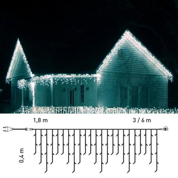 Kontakt LED Kültéri toldható jégcsapfüzér, hideg fehér, 197 LED, 6 x 0,4 m KDK 020 A kiváló minőségű toldható LED jégcsapfüzér kültéri dekorálásra alkalmas, varázslatos fénybe burkolja házad, ablakaid, keritésed vagy