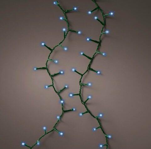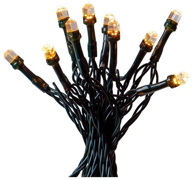 LED kültéri karácsonyi lánc. Ideális kerti dekorációnak. Világítás színe: meleg fehér. A megvilágított lánc teljes hossza: 15 m. A tápkábel hossza: 5 m. Teljes hossz: 20 m. Időzítő funkció: 6 órára be és 18 órára kikapcsolva. IP44 – fröccsenő vízálló.