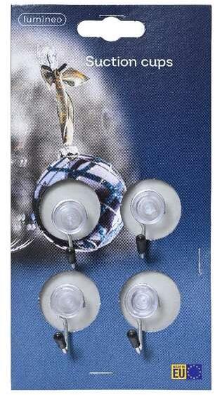 Akasztó kampó tapadókoronggal 4 db/csomag Praktikus rögzítő elem fényfüzérekhez, fényfüggönyökhöz. Megkönnyíti a munkát, ha sima felületre, üvegre, ablakra szeretnéd felszerelni a fényfüzért. A csomag 4 db rögzítőelemet tartalmaz. Méret: 3.50 x 1.80 x 0.40 cm Szín: áttetsző Használat: kültéren/beltéren