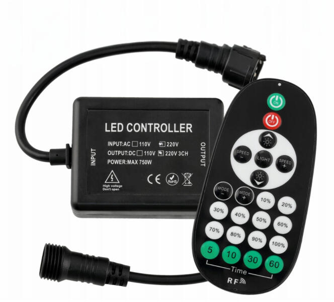 Többfunkciós RF távirányító fényfüzéreinkhez: - Ki- bekapcsolás - Fényerőszabályzás: 10% - 100% fényerő fokozatmentesen vagy 10%-onként állítható - Többféle villogó mód : Szabályozható sebességű villogó fényhatások jól alkalmazhatók pl. rendezvényeken a hangulat fokozása érdekében :) - Időzítő funkció : késleltetett kikapcsolás 5, 10, 30 vagy 60 perc elte