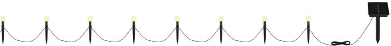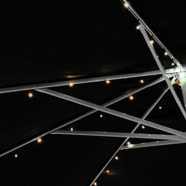 Ezzel a napelemes lánccal kellemes hangulatot teremthet a napernyő alatt. A láncot a mellékelt kábelkötegelővel egyszerűen rögzítheti a napernyő bordáihoz, a napelemet pedig egy bilinccsel rögzítheti a szövethez. Szürkületkor a LED-világítás automatikusan bekapcsol. A világításhoz beállítható a villogó funkció. A LED világítás élettartama több mint 6000 óra. A rö