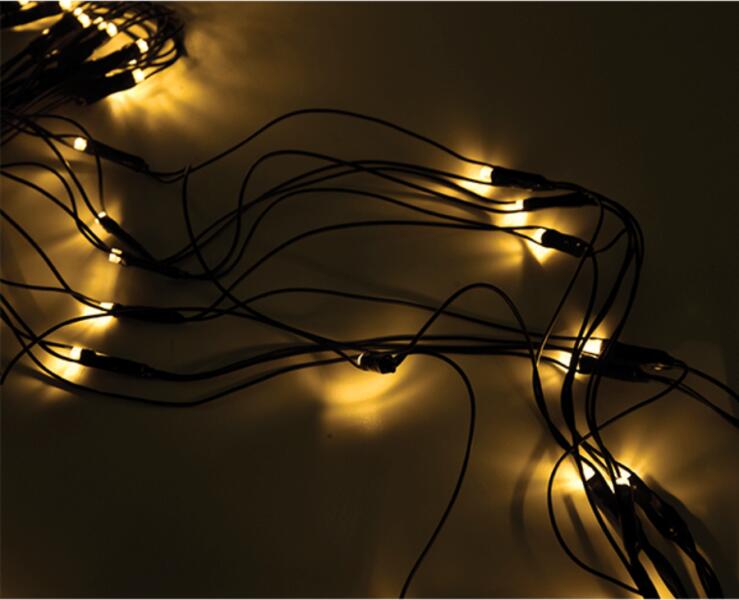 LED karácsonyi fénylánc 200 lámpával. Kültéri használatra (IP44). Lánc hossza: 10 m. Kábelhossz: 5 m. Transzformátor a csomagban - 24V.