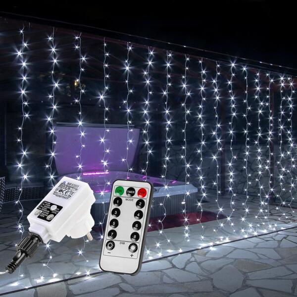 LED FÉNYFÜGGÖNY 6x3m HIDEG FEHÉR IZZÓKKAL Fényfüggöny 6x3m méretben. Hideg fehér, 600 energiatakarékos LED izzóból áll, kül- és beltéren egyaránt használható , közvetlen 230 V-os csatlakozóval. Lenyűgöző hangulatot teremt a teraszra, a kertbe vagy a ház falára helyezve. VILÁGÍTÁSI MÓDOK 8 világító mód: 1. kombinált, 2. fényhullám, 3. egymást követő, 4. izz