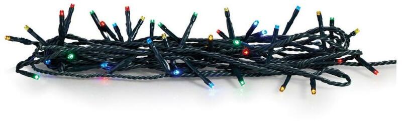 LED karácsonyi fénylánc 80 színes lámpával. Kültéri használatra (IP44). Lánc hossza: 8 m. Kábelhossz: 5 m. Transzformátor a csomagban - 24V.
