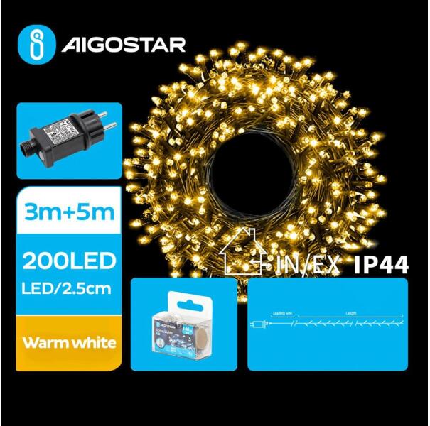 8 világítási mód (villogás, váltakozó fények, dimmelés stb. ). Időzítő 6h / 18h - automatikusan kikapcsol és újra bekapcsol 18 óra után. A diódák közti távolság 10cm. Vezeték hossza 3m. Megvilágított kábel hossza 5 m.