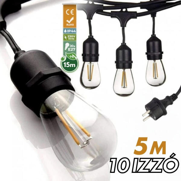Az ár a LED izzókat is tartalmazza! Kültéri fényfüzér / égősor mely kertek, teraszok dekorációs megvilágítására szolgál, legyen szó akár egy baráti összejövetelről, vagy csak egy esti ejtőzésről családi körben. Visszafogott fényükkel meghitt hangulatot teremtenek, használhatóak akár éttermek teraszán, vagy kültéri rendezvények, esküvők, ünnepségek dekoráci