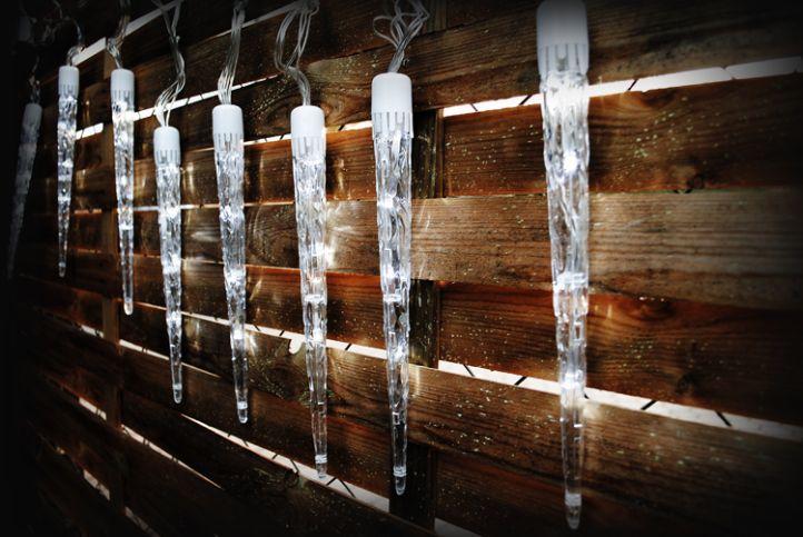 A stílusos dekoratív LED világítás különösen ideális kültéri használatra télen. Az izzó jégcsapok gyönyörűen megvilágítják házát vagy kertjét. A lánc 10 darab jégcsapot tartalmaz, egyenként 4 LED-del. Ez a dekoratív világítás 8 fénymódot kínál - fény, villogó, csordogáló hatás, majd különböző villogási időintervallumok. A világításnak nincs memória
