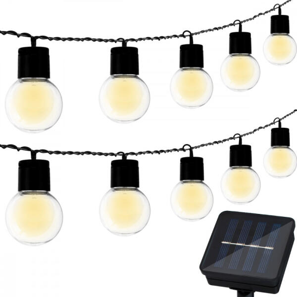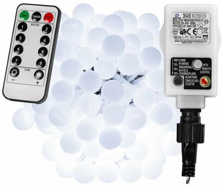 Kültéri LED fényfüzér gömb izzókkal - 20m - 200 LED, hideg fehér A kültéri LED fényfüzér gömb izzókkal ideális kellék karácsonyi világításhoz, kerti dekorációhoz, karácsonyfa megvilágításához vagy erkélyvilágításhoz. Varázslatos karácsonyi hangulatot teremthetsz ezzel a kültéri LED fényfüzérrel. A 20 méteres hosszúsága és hideg fehér színe lenyűgöző