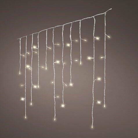 LED jégcsap fényfüggöny meleg fehér 17,8m (720 LED) A fényfüggöny kül- és beltéren egyaránt használható 720 energiatakarékos LED izzóból áll, közvetlen 230 V-os csatlakozóval. Lenyűgöző hangulatot teremt a teraszra, a kertbe vagy a ház falára helyezve. VILÁGÍTÁSI MÓDOK 10 világító mód. Vezérlése egyszerű, az adapteren található gomb megnyomásával változtath