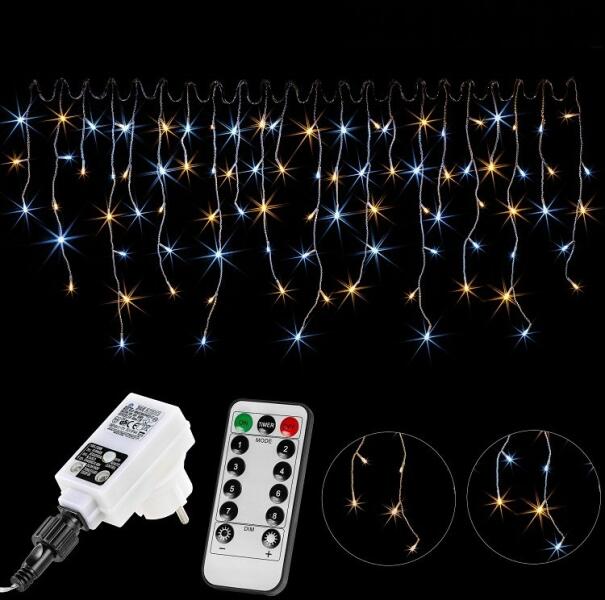 LED JÉGCSAP FÉNYFÜZÉR A fényfüggöny kül- és beltéren egyaránt használható 200 energiatakarékos LED izzóból áll, közvetlen 230 V-os csatlakozóval. Lenyűgöző hangulatot teremt a teraszra, a kertbe vagy a ház falára helyezve. Az LED jégcsap fényfüggöny hideg - meleg fehér 5m (200 LED) távirányítóval tökéletes választás adventkor és karácsonykor. Az áttetsző k