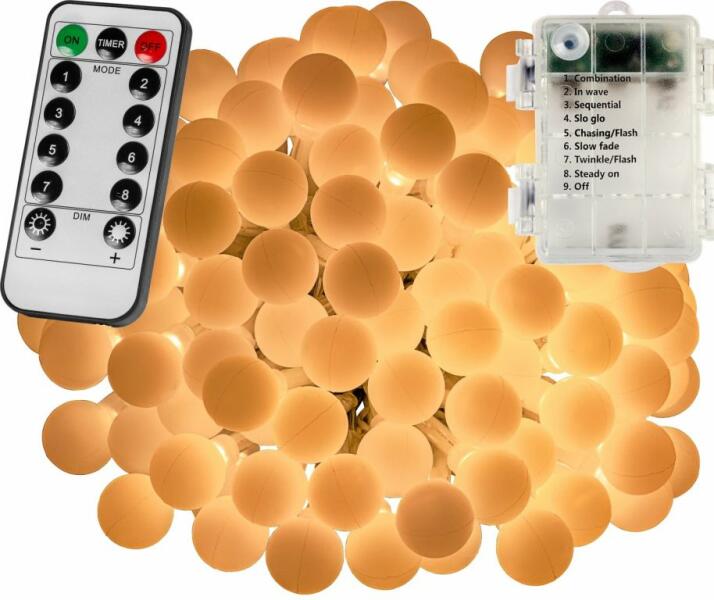 A kültéri partivilágítás nagyszerű kiegészítője otthonának és kertjének. Elhelyezheti az erkélyen, a teraszon, a kerti pavilonban, de akár az ablakon, a polcokon vagy a lépcsőház körül is. A távirányítónak köszönhetően nem csak a világítást kapcsolhatja be és ki kényelmesen, hanem mind a 8 fényhatást is megváltoztathatja. Ezen kívül imádni fogja az időzítő o