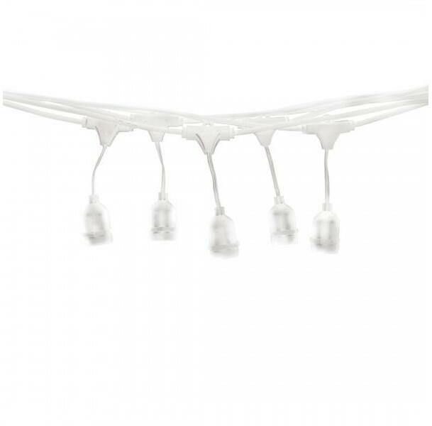 Kültéri lánc, amely kiválóan alkalmas kertek, teraszok vagy pavilonok megvilágítására. Az IP44 védettségi fok garantálja a víz- és porállóságot. Az izzókat a csomag nem tartalmazza ( a kép csak illusztráció). Ez a modell egy másik lánchoz is csatlakoztatható a végén található aljzat segítségével.