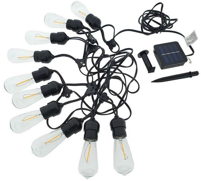 LED napelemes lánc. Az alacsony fényintenzitás miatt főként dekorációs lámpaként használják. Alkalmas kertek, utak, pavilonok és teraszok díszítésére. Lámpák száma: 10. Teljes hossz: 5,94 m. Világítás színe: meleg fehér. Feszültség: 3 V.