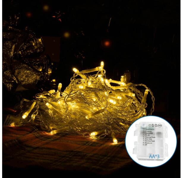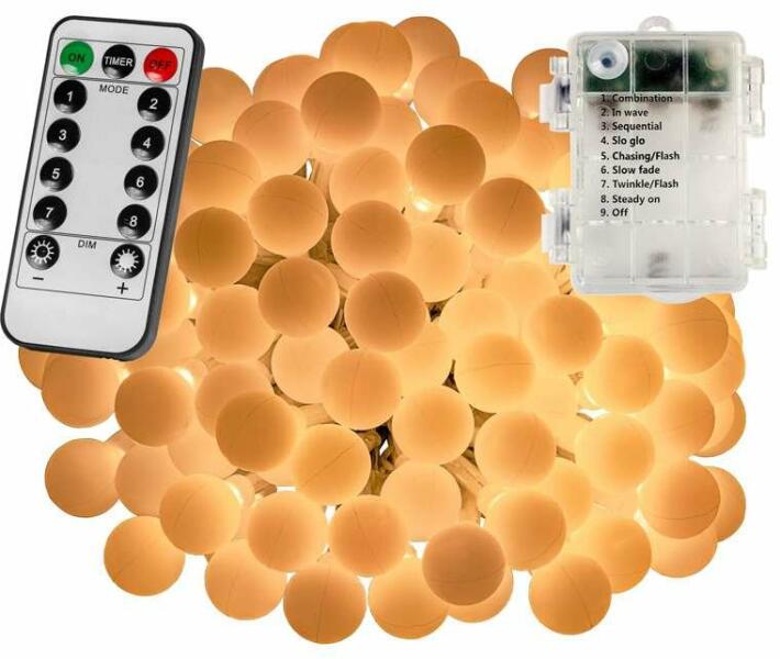 Kültéri LED elemes fényfüzér gömb izzókkal - 10m - 100 LED, meleg fehér A kültéri LED elemes fényfüzér gömb izzókkal ideális kellék karácsonyi világításhoz, kerti dekorációhoz, karácsonyfa megvilágításához vagy erkélyvilágításhoz. Nincs szükség hálózatra, bárhová könnyedén telepíthető. Tölthető elemekkel hosszabb ideig élvezhető a füzér fénye és k