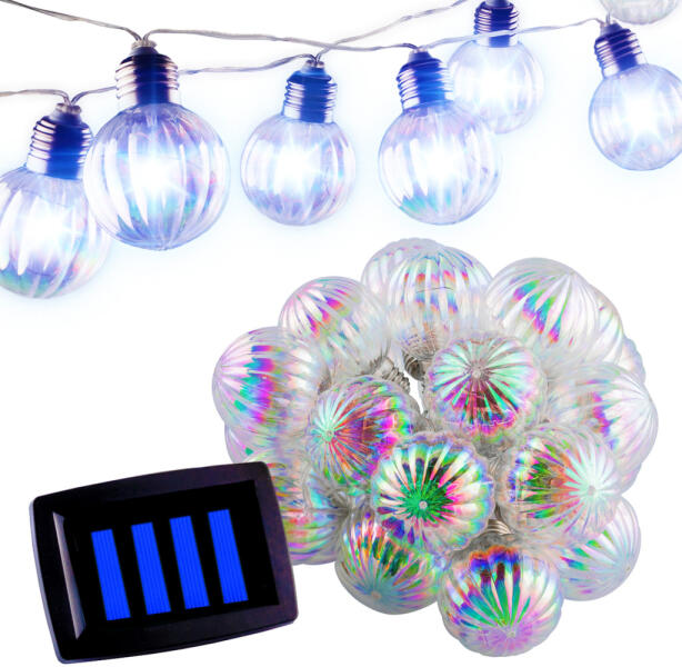 Kültéri LED elemes gömb fényfüzér - 10m - 100 LED, hideg fehér A kültéri LED elemes gömb fényfüzér gömb izzókkal ideális kellék karácsonyi világításhoz, kerti dekorációhoz, karácsonyfa megvilágításához vagy erkélyvilágításhoz. Nincs szükség hálózatra, bárhová könnyedén telepíthető. Tölthető elemekkel hosszabb ideig élvezhető a gömb fényfüzér fénye