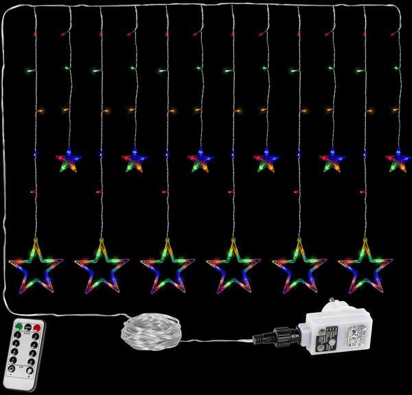 LED csillag fényfüggöny, színes 2x1m A csillag fényfüggöny multicolor, 150 energiatakarékos LED izzóból áll, kül- és beltéren egyaránt használható , közvetlen 230 V-os csatlakozóval. Lenyűgöző hangulatot teremt a teraszra, a kertbe vagy a ház falára helyezve. VILÁGÍTÁSI MÓDOK 8 világító mód: 1. kombinált, 2. fényhullám, 3. egymást követő, 4. izzó, 5. villanó