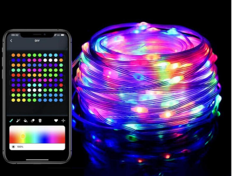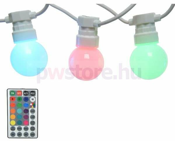 LED sorolható party távirányítós fényfüzér színváltó 9,5 m, 20 LED A távirányítós kültéri fényfüzér égősor ideális választás könnyed hangulatú összejövetelekhez, kültéri rendezvényekhez, kerti dekorációhoz vagy erkélyvilágításhoz. A LED-es fényfüzér a belső transzformátor elektromos aljzathoz való csatlakoztatásakor rögtön világít. A LED-es fényfü