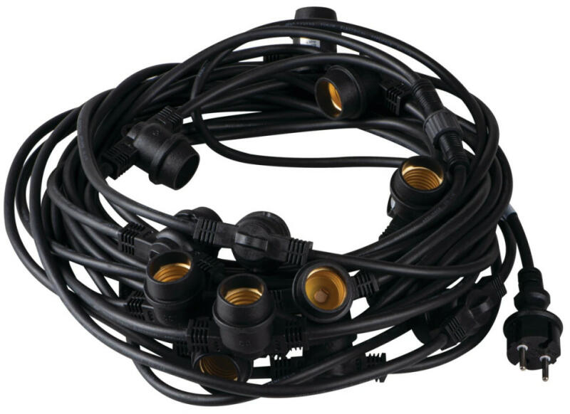 Kanlux 35758 GRL 15M15E27-B kültéri fényfüzér girland fekete színben, 15000mm hosszúság, 15db E27 foglalat, 15x max 10W teljesítmény, IP44 védettséggel, 220-240V ( Kanlux 35758 )