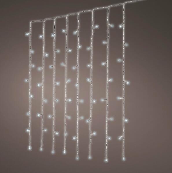 LED sorolható fényfüggöny hideg fehér 1,5x3m (300 LED) A fényfüggöny kül- és beltéren egyaránt használható 300 energiatakarékos LED izzóból áll, közvetlen 230 V-os csatlakozóval. Lenyűgöző hangulatot teremt a teraszra, a kertbe vagy a ház falára helyezve. TOLDHATÓSÁG A termék sorolható, akár több függönyt is össze lehet kapcsolni. Elég egy függöny csatlakoztat