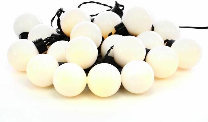 Kültéri LED fényfüzér 20m gömb izzókkal, 200 LED, meleg fehér A kültéri LED fényfüzér 20m gömb izzókkal ideális kellék kültéri világításhoz, kerti dekorációhoz, karácsonyfa megvilágításához vagy erkélyvilágításhoz. fényfüzér 20m A német Voltronic márka az innovatív elektronikai termékeket képviseli, a minőség és a biztonság elsődleges szempontnak szám