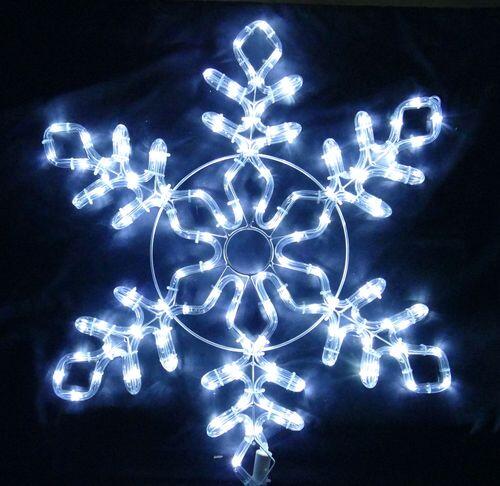 Life Light Led karácsonyi kül- és beltéri /IP44/ hópihe, 144 db hideg fehér Leddel, fehér kábellel, 230V, fogyasztása 24W, termék mérete: 61x55 cm, a vezeték hossza: 1,5 m. Méterenként 2 db Led felvillan! A Ledek nem cserélhetőek! Akár utcai díszítésre, villanyoszlopokra is alkalmas! Life Light Led 2 év garancia!