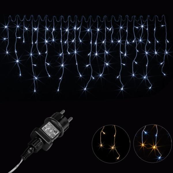 LED jégcsap fényfüggöny meleg fehér, 8 funkció, 20m (490 LED) A fényfüggöny kül- és beltéren egyaránt használható 490 energiatakarékos LED izzóból áll, közvetlen 230 V-os csatlakozóval. Lenyűgöző hangulatot teremt a teraszra, a kertbe vagy a ház falára helyezve. VILÁGÍTÁSI MÓDOK 8 világító mód. Vezérlése egyszerű, az adapteren található gomb megnyomásával v