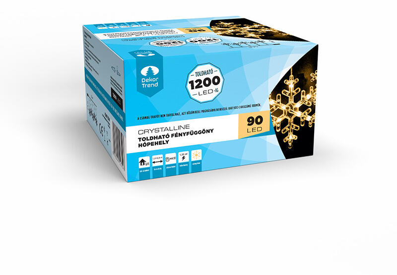 Díszítsd otthonodat, készülj az ünnepekre ezzel a hópehely formájú fényfüggönnyel. Tökéletesen alkalmas ablakok, kerítések, korlátok dekorálására. Meleg, meghitt karácsonyi hangulatot idéző fényfüggöny. Tökéletes dekoráció a gyermekszobák számára. A fényfüggönyön 6 db hópehely világít. A Dekortrend Crystalline led fényfüzér család kiválóan alkalmas rend