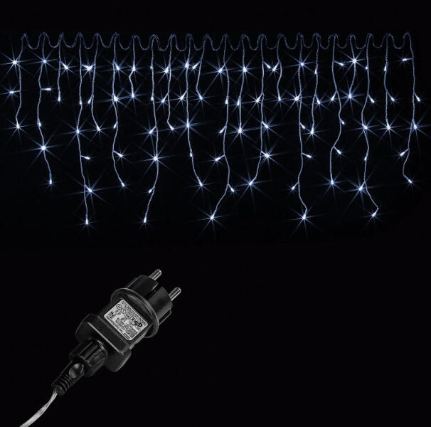 LED JÉGCSAP FÉNYFÜZÉR 5m A jégcsap fényfüzér 5m hosszú + 5m tápkábellel rendelkezik, kül- és beltéren egyaránt használható 200 energiatakarékos LED izzóból áll, közvetlen 230 V-os csatlakozóval. Lenyűgöző hangulatot teremt a teraszra, a kertbe vagy a ház falára helyezve. Ez a jégcsap fényfüzér elegáns ünnepi dekoráció, amely hideg fehér fényben ragyog. A 5 mé