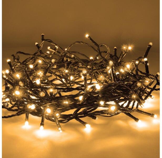 LED kültéri karácsonyi lánc. LED-ek száma: 700. Fény színe: meleg fehér. 8 fénymód (villódzás, keverés, tompítás stb. ). Memória funkció - bekapcsoláskor az utoljára használt fénymód aktiválódik. Izzó távolsága: 10 cm. A világító kábel hossza: 70 m. A tápkábel hossza: 5 m. Kábel színe: zöld. Védelmi osztály: IP44 (beltéri és kültéri használat).