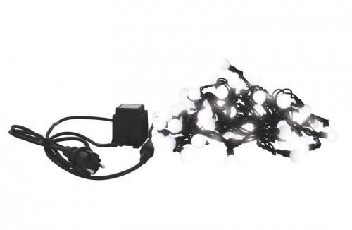 Professzionális igényeket is kielégítő, rendkívül látványos, és strapabíró kültéri fényfüzér. 23 mm átmérőjű törhetetlen műanyaggömbökbe integrált fehér LED-ekkel. 10 m. 100 db hidegfehér 23 mm átmérőjű törhetetlen LED, 10 cm-es távolságra egymástól. A füzér hossza 10 m, + 2 m gumi tápkábel ~ a közepén a hálózati adapterrel. A tartozék 24 V-os hálóza