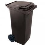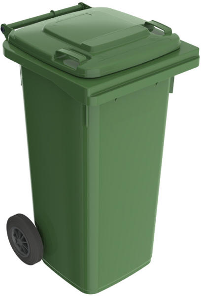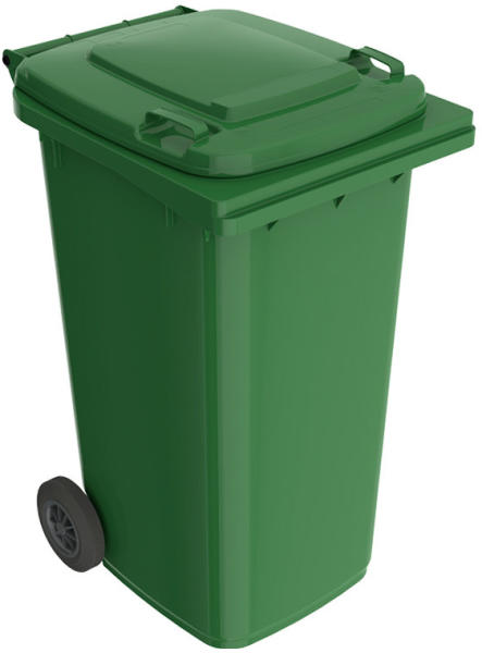 Háztartási szemetes kuka fekete 120 L (SPK00025) A fekete színű háztartási szemetes kuka űrtartalma 120 liter. Magassága 900 mm, szélessége 475 mm, hossza 550 mm. CE jelöléssel ellátott, az EN 840-1 szabványnak megfelelő. A háztartási kuka könnyű helyváltoztatását elősegíti a 2 darab kerék, melyek átmérője 200 mm. Gépi ürítésre alkalmas. Terhelhetősége max. 60 kg.