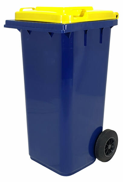 A kék színű háztartási szemetes kuka űrtartalma 120 liter. Magassága 900 mm, Szélessége 475 mm, hossza 550 mm. Európai jogszabályoknak megfelelő CE szabvánnyal ellátott. A háztartási kuka könnyű helyváltoztatását elősegíti a 2 darab tömör kerék. Gépi ürítésre alkalmas. Terhelhetősége 60 kg. A háztartási szemetes kuka forró folyadék vagy hamu tárolására nem ha