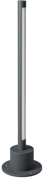 Feketére festett alumínium kültéri álló lámpa műanyag betéttel, beépített LED fényforrással és IP54-es védelemmel.