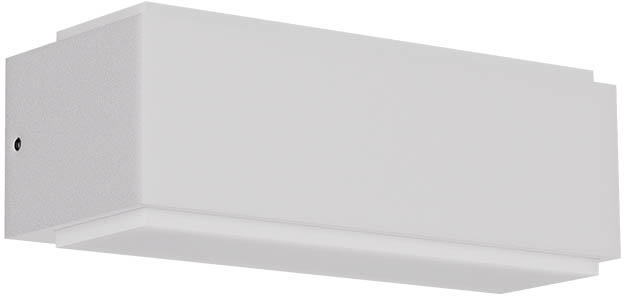 Matt fehér színű alumínium kültéri fali lámpa 7,7W meleg fehér fényű beépített LED fényforrással, IP65-ös védelemmel, opálos polikarbonát betéttel. A lámpa felfelé és lefelé egyaránt világít.