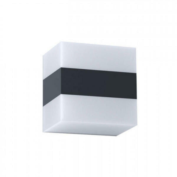 Sötét szürke színű ABS kültéri fali lámpa 8W meleg fehér fényű beépített LED fényforrással, opálos polikarbonát betéttel, IP65-ös védelemmel.