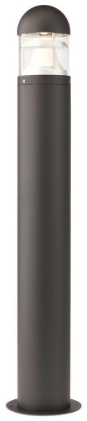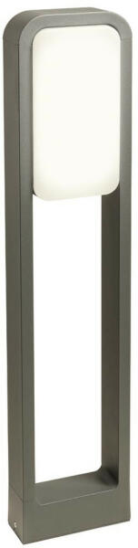Sötét szürke színű alumínium kültéri álló lámpa 12W meleg fehér fényű beépített LED fényforrással, opálos polikarbonát búrával, IP54-es védelemmel.