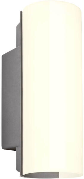 Kültéri fali lámpa, SMD LED-el szerelve, elektrosztatikus mezőben sötét szürkére festett öntött aluminíum lámpatest, opál polikarbonát diszperzór.