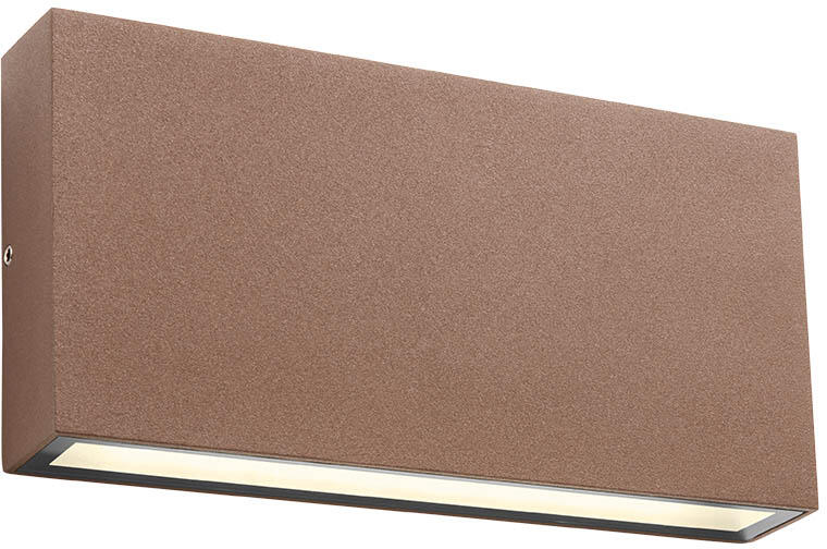 Barna színű alumínium kültéri fali lámpa 12W természetes fehér fényű beépített LED fényforrással, IP54-es védelemmel, edzett üveg betéttel. A lámpa felfelé és lefelé egyaránt világít.