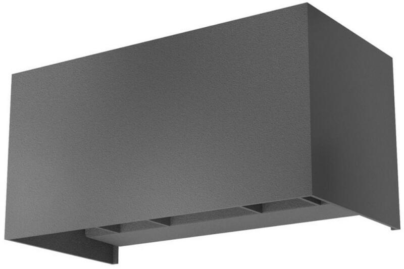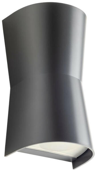 Sötét szürke színű alumínium kültéri fali lámpa 2x10W meleg fehér fényű beépített LED fényforrással, IP54-es védelemmel, edzett üveg betéttel. A lámpa felfelé és lefelé egyaránt világít. A fényszórás szöge állítható, így egyedileg világíthatjuk meg a homlokzatot, illetve kedvünk szerint változtathatjuk.