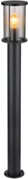 Matt fekete színre festett rozsdamentes acél álló lámpa füstüveg búrával, E27-es foglalattal.