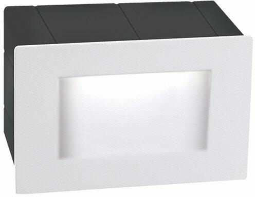 Szögletes, modern, besüllyeszthető kültéri fali lámpa. Lépcsővilágításra alkalmas. Anyaga alumínium, színe fehér. A lámpa fénye 15 fokos szögben világít, meleg fehér fényű, beépített LED fényforrást tartalmaz, mely nem cserélhető. IP54-es védelemmel rendelkezik, amely véd a fröccsenő víz ellen, illetve nem hatolhat be olyan mennyiségű por, amely zavarná a berend